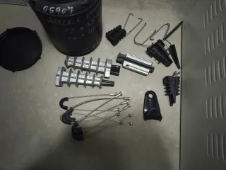 Lote de material eléctrico para instalaciones aéreas de Baja Tensión (BT). - Grapas sujeción aérea trenzados BT para diferentes secciones - Cuna de alineación para red aérea BT - Niled derivacion para diferentes secciones