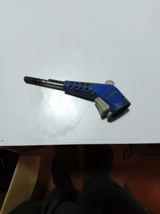 Soplete de la marca Berner. - Diseño ergonómico en color azul y gris. - Boquilla metálica. - Mecanismo de encendido y ajuste de llama.