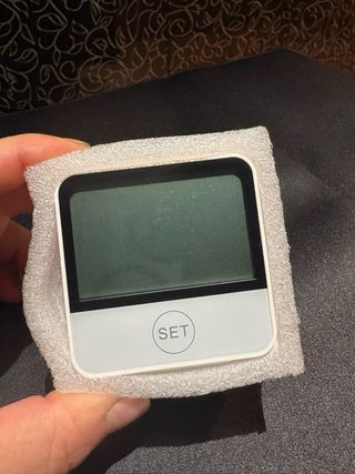 Sensor inteligente para monitorear la temperatura y humedad de tu hogar. Se conecta a tu red WiFi para un control remoto. - Compatible con Alexa y Google Assistant. - Pantalla digital clara. - Botón SET para configuración.