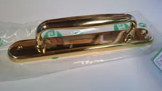 Manilla con placa Hoppe modelo Alicante. - Acabado dorado - Dispongo de 40 juegos - Se venden juntos o por separado. - Más en mí perfil.