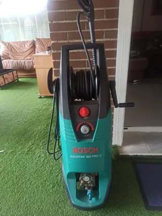 Hidrolimpiadora de alta presión Bosch Aquatak 150 Pro X. - Presión máxima de 150 bares. - Diseño robusto y compacto. - Manguera enrollable integrada.