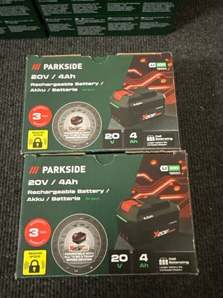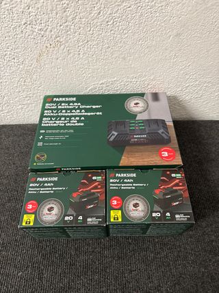 Cargador doble para baterías Parkside de 20V. Baterías X20vteam - Voltaje: 20V. - Corriente de carga máxima: 2 x 4.5A. - Consumo de potencia: 220W. - Longitud del cable: 2m. - 2 Baterías de 4ah - 2 baterías de 2ah - 2 cargadores 2,4ah - 1 cargador rápido doble 4,5 ah ❌❌ precio fijo ❗️ Milwaukee,Makita, Dewalt,, Bosch, Hilti, Worx, Aeg, Metabo, Einhell, Perfomance, Carpintero, batería, pintura, reforma, obra, metal, Decapadora, percusión, radial, Amoladora, sierra, compresor llave impacto, atornillador, Percutor, atornilladora, Parkside, LIDL taladro,