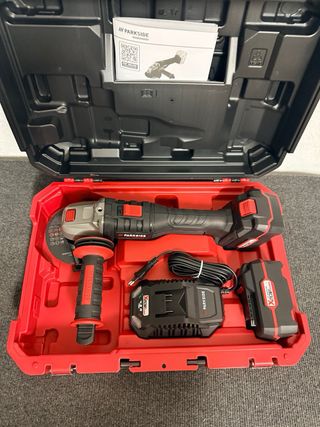 Amoladora angular recargable Parkside Performance 20V. Sin velocidades mejor motor sin electrónica potente corte sin mantenimiento gracias a su motor sin escobillas - ✅Modelo PWSAP 20-LI C3. - ⚙️Motor Brushless. - 🧰Incluye maletín de transporte. - 🔋incluye 2 baterías - 🔌cargador. ❌❌ No negociable ❗️ Válido para discos Milwaukee,Makita, Dewalt,, Bosch, Hilti, Worx, Aeg, Metabo, Einhell, Perfomance, Carpintero, batería, pintura, reforma, obra, metal, Decapadora, percusión, radial, Amoladora, sierra, compresor llave impacto, atornillador, Percutor, atornilladora, Parkside,