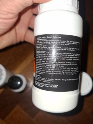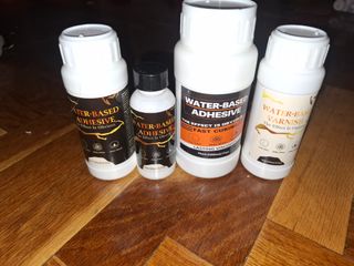 Lote de base adhesiva y barniz de base acuosa. - Base adhesiva Water-Based, 200ml. - Base adhesiva Water-Based, 50ml. - Barniz Water-Based, 200ml.