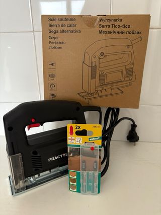 Sierra de calar Practyl en buen estado, lista para usar. Incluye dos recambios de sierra de la marca Wolfcraft. - Sierra de calar Practyl. - Dos hojas de sierra Wolfcraft (2383). - Hojas aptas para madera (20 mm).