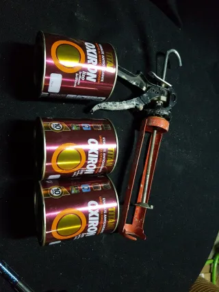 Se vende lote de 3 latas de esmalte antioxidante Oxiron Titan, color liso brillante, junto con una pistola aplicadora. - 3 latas de Oxiron Titan. - Color liso brillante. - Incluye pistola aplicadora. Cc15