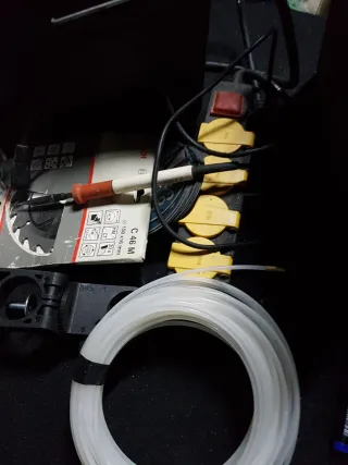 Se vende lote de herramientas variadas. - Dos bombillas JUPITER 100W. - Disco de sierra Bosch C 46 M (150 x 16 mm). - Soldador con mango naranja y punta. - Regleta de enchufes con interruptor. - Rollo de tubo de plástico blanco. Cc16