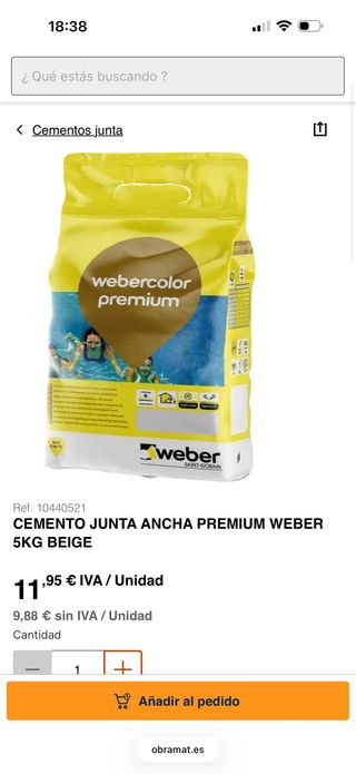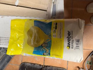 Cemento para juntas de Weber en color beige, presentación de 5kg. - Modelo: Cemento Junta Ancha Premium. - Color: Beige. - Peso: 5kg. - Referencia: 10440521. Precio 6 euros por saco dispongo de 20 sacos de 5kg