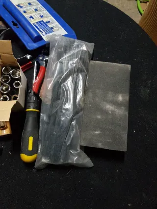 Conjunto de herramientas manuales y accesorios. - Cinta métrica metálica. - Juego de llaves Allen. - Martillo con mango de madera. - Destornillador con mango de plástico y goma. - Juego de vasos de metal. - Alicates. - Espátulas. - Bloque de lija. - Bridas de plástico negras. Cc1