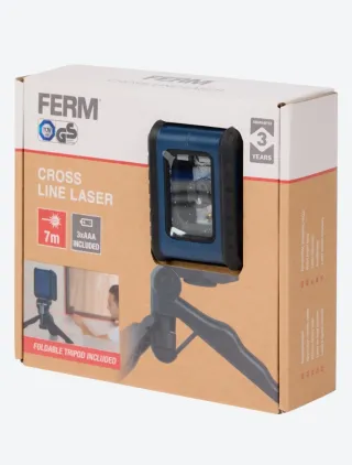Nivel láser cruzado de la marca Ferm. Compacto y fácil de usar. - Proyecta líneas horizontales y verticales.