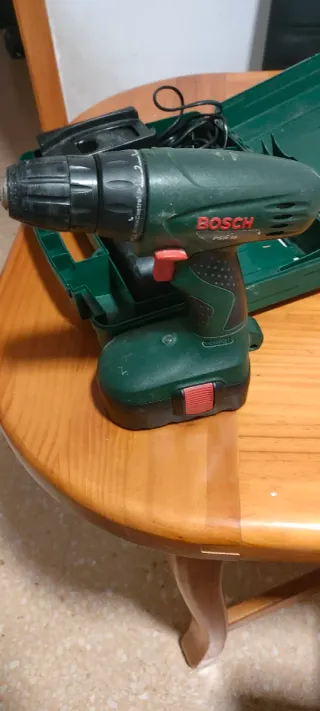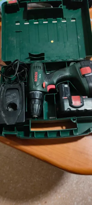 Taladro atornillador Bosch en su maletín. - Incluye cargador. - Incluye batería. - Maletín de transporte. -50€ solo trato en mano no hago envíos posiblidad de hacer lote con más productos de mi perfil