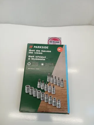 Set de llaves de vaso Parkside de 19 piezas. - Incluye vasos E10/E11/E12/E14/E16/E18/E20/E22/E24. - Incluye puntas T20/T25/T27/T30/T40/T45/T50/T55/T60/T70. tags: Lidl, Bosch, Maquita, Dewalt, Stayer, Inverter, Hilti, Worx, Metabo, Einhell, carpintero, carpintería, batería, pintór, pintura, reforma, obra, metal, percusión, radial, amoladora, sierra caladora circular laser, compresor, llave, atornillador, atornilladora, soldar, soldadura, aparato, pistola, grapadora, lijadora herramienta compresor, ingletadora, impacto, fresadora, broca, aspiradora, taladro martillo,bricolaje,manualidades,lienzos
