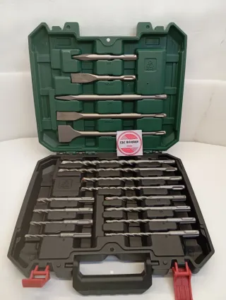 Set de brocas y cinceles Parkside para martillo percutor. - Incluye brocas de diferentes tamaños. - Incluye cinceles planos y de punta. - Estuche organizador verde. tags: Lidl, Bosch, Maquita, Dewalt, Stayer, Inverter, Hilti, Worx, Metabo, Einhell, carpintero, carpintería, batería, pintór, pintura, reforma, obra, metal, percusión, radial, amoladora, sierra caladora circular laser, compresor, llave, atornillador, atornilladora, soldar, soldadura, aparato, pistola, grapadora, lijadora herramienta compresor, ingletadora, impacto, fresadora, broca, aspiradora, taladro martillo,bricolaje,manualidades,lienzos
