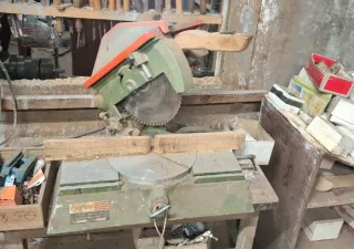 Ingletadora de taller con mesa, ideal para trabajos de carpintería. - Trifásica a 3,80 y 2,20. - Diseñada para cortes precisos en madera. - Robusta construcción para uso profesional. - Incluye sistema de guia para el material.
