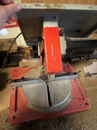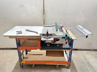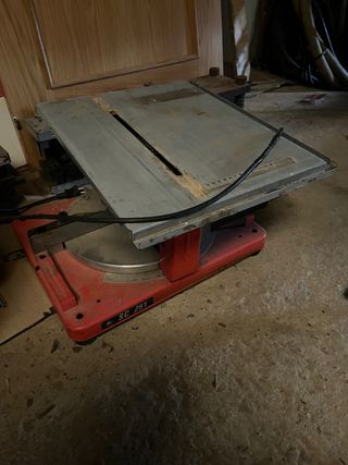Sierra de mesa de la marca Metabo. - Modelo de sierra circular de mesa. - Incluye el logo de Metabo visible en la carcasa.cortes en inglete a 45 grados ,máquina antigua pero robusta .funciona perfectamente.