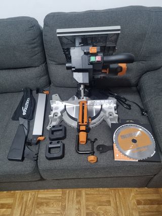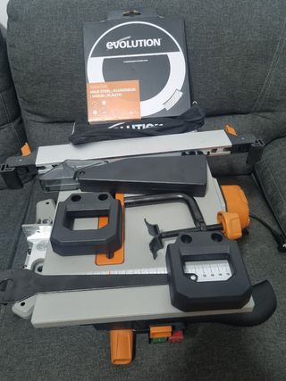 En buen estado- Solo hago envios. -Incluye Einhell Llave neumática de impacto TC-PW 340 -Incluye Tacwise 0777 Clavos en Bobina Plana Galvanizados Evolution Power Tools R255TBL+ Sierra De Mesa (Próxima Generación Rage 5-S) Hoja De Corte Multimaterial Incluida Corta Madera Metal Plástico, Bisel 45˚, +/- 60˚ Ángulo De Inglete, 1800w