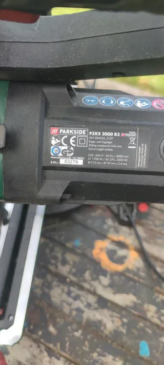 Sierra ingletadora telescópica Parkside. - Potencia: 2000 W - Velocidad en vacío: 4500 min⁻¹ Está como nueva funciona ala perfección