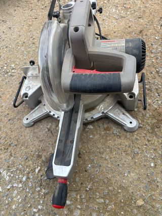 Sierra ingletadora telescópica en buen estado. - Disco de sierra incluido. - Base giratoria para cortes angulares. - Mango ergonómico para un mejor agarre.