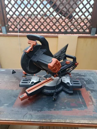Ingletadora telescópica de la marca RYOBI. Ideal para cortes precisos. - Diseño robusto y duradero. - Mango ergonómico para un mejor agarre. - Base estable para mayor seguridad.