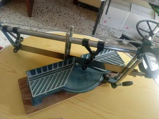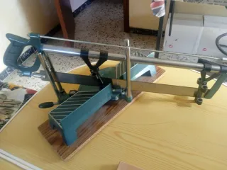 Sierra ingletadora de banco en buen estado. Ideal para trabajos de carpintería. - Mecanismo de ajuste preciso. - Hoja de sierra de metal. - Base robusta y estable. - Mango ergonómico.