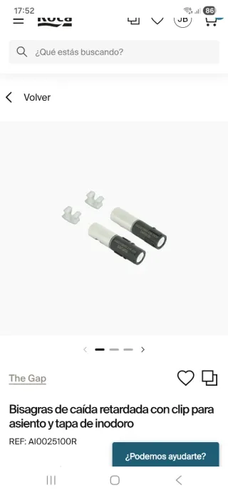 Kit de bisagras Roca para tapa de inodoro con caída retardada. - Modelo: AI0001200R - Material: Latón (CR BRASS) - Cierre suave (soft close) - Fabricado en UE Precio de venta en tienda oficila: 102€ CARACTERÍSTICAS Kit conjunto de bisagras para asiento con caída amortiguada. Compatible con los modelos América, Happening, Hall, Sidney, Meridian, Dama Senso, Dama Senso compacto, y Giralda.
