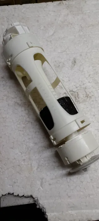 Pieza de repuesto para cisterna de inodoro. - Fabricada en plástico y goma. - Color blanco y gris.