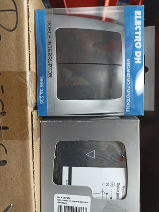 mecanismos luz Marca DH nuevo por liquidación stock color gris y grafito como se ven fotos mecanismos interruptor conmutador Persianas cruzamiento doble teclas marco doble y tres 5€ cada uno material ferretería fontanería cerrajería lampisteria eléctrico electricidad luz agua cerraduras manetas pomos mecanismos Simon material PVC tubos desagües válvulas sifones rollo cable canaletas accesorios recambios