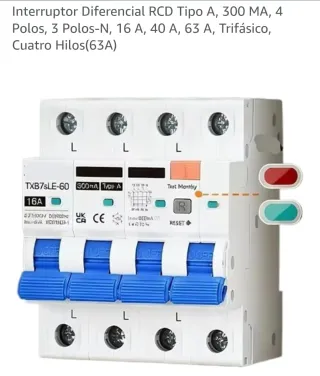 2 Interruptores diferencial RCD Tipo A de 60A, 4 polos, trifásico. - Modelo: TXB7sLE-60 - Sensibilidad: 300mA - Corriente nominal: 60A - Tipo: A - Polos: 4 (3 Polos-N) - Conexión: Cuatro Hilos - Certificaciones: UK CA, CE