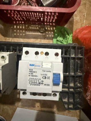 Interruptor diferencial KAY RCCB F360(CDL7) de 25A. - Corriente nominal: 25A - Corriente residual: 0.03A - Tensión nominal: 240/415V~ - Cumple norma BS 4293 - Modelo: F360(CDL7) - Marca: KAY - Tipo: RCCB - Indicador de prueba: Push monthly