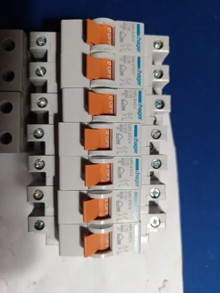 Se vende lote de interruptores automáticos y diferenciales. - 7 Interruptores Hager MN910V,MN916V, MN920V. - 2Interruptores Legrand 40A 30mA. Material nuevo. Tengo más material en mi perfil .