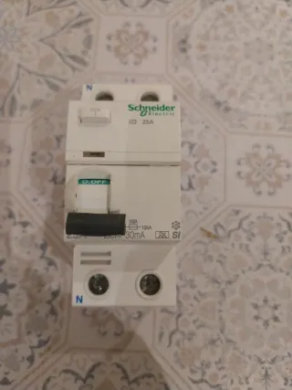 Interruptor diferencial Schneider Electric. Precio por unidad , 2 unidades disponibles - Modelo ID. - Intensidad nominal: 25A. - Sensibilidad: 30mA. - Tensión nominal: 400V. - Número de polos: 4.