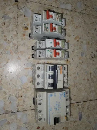 Lote variado de interruptores diferenciales y magnetotérmicos. Incluye unidades nuevas y usadas. - Variedad de modelos y marcas. - Componentes eléctricos para instalaciones.