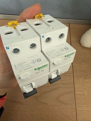 📦 Tengo varias unidades nuevas sin usar de Diferencial A-SI Schneider 2P 40A 30mA (modelo A9R61240, serie Acti9 iID), ideal para protección eléctrica de viviendas, locales o instalaciones profesionales. 🔌 Características principales: Interruptor diferencial 2P, 40 A, 30 mA Clase de protección A-SI (superinmunizado) — evita disparos accidentales por armónicos o sobretensiones leves. Montaje en carril DIN Perfecto para instaladores, electricistas o reformas. 💸 Precio: 37,50 € por unidad 🔎 Valor en tienda suele estar más alto (~50–65 € o más por unidad)