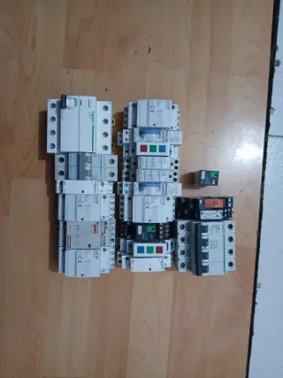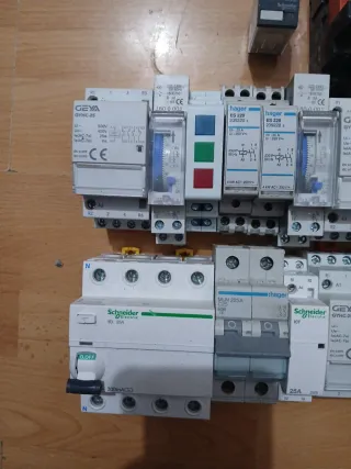 Lote variado de interruptores eléctricos para cuadros y maniobras eléctricas: Magnetotermicos, Diferenciales, Contactores, Relés, Reloj horario, Indicadores Led, todo funcionando a 230v. Hago precio por unidad o 50€ el lote completo. También puedo juntar con otros productos de mi perfil.