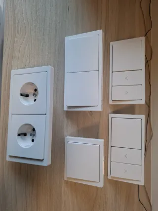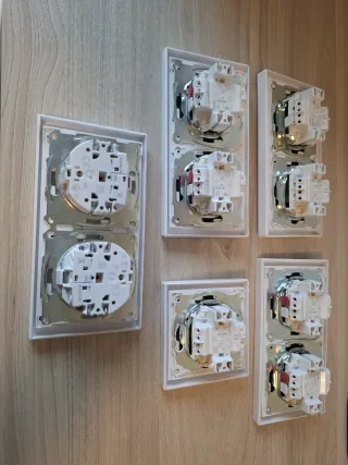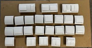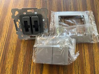 -Interruptores individuales simples 3 -> 4€ cada uno -Interruptores de cruzamiento 3 -> 8€ cada uno -Interruptores conmutadores 5 -> 6€ cada uno -Enchufes 9 -> 4€ cada uno -Enchufe + enchufe 3 -> 10€ cada uno VENDIDOS -Interruptor + enchufe 7 -> 10€ cada uno -Interruptor doble 1 -> 10€ -Interruptor individual + doble 1 -> 12€ Usados 1 mes sólo. Dime cuántos quieres para hacerte un anuncio y puedo rebajar algo por varias unidades.
