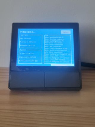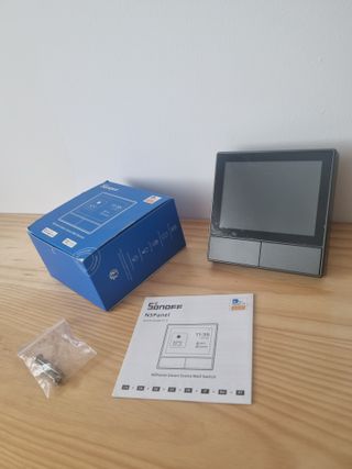 Panel WiFi SONOFF NSPanel con doble interruptor físico de pared (Standard 86/EU Type y Color Dim Gray). - Dispositivo flasheado y funcionando con el firmware para ESPHome de Home Assistant más conocido: Blackymas/NSPanel_HA_Blueprint v2025120 - Dispositivo en perfecto estado y además la pantalla aun tiene el plástico protector original sin retirar. - Se vende por cambio de la instalación domótica, pero el dispositivo sigue siendo totalmente funcional y operativo. - Incluye dispositivo, caja, manual y tornillería.