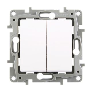 Interruptor doble Legrand en color blanco Salbei, con marco incluido. - Diseño moderno y elegante. - Acabado en blanco Salbei.