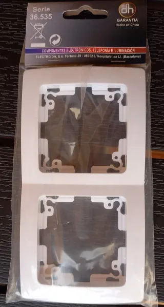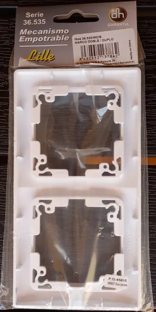 Marco doble para enchufes e interruptores de la serie 36.535 de ELECTRO DH Tengo enchufe e interruptor para este marco, ver en mis productos Tengos más productos de electricidad en mi perfil Hago envíos. El importe de este producto será donado a una ONG. ¡Entra en mi perfil para ver otros productos en oferta!