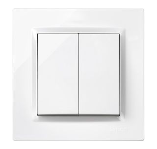 Interruptor doble de pared conmutado. - Color blanco. - Diseño moderno.