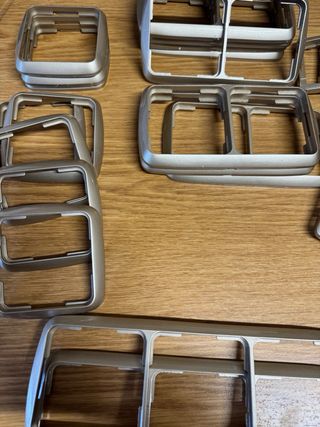 1 undidad de tapa doble de interruptor y 2 tapas de 1 elemento, en color aluminio. La tapa doble tiene desperfectos en la superficie. Serie Simon 75.