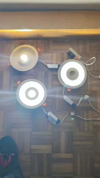 Detalles del producto Lote de 4 plafones empotrables LED circulares con doble potencia combinable. Se puede encender la luz central, la perimetral o ambas al mismo tiempo, no hace falta nueva instalacion, con el mismo interruptor de la pared al encender y apagar se cambia el modo de iluminacion. - Potencia principal de 15W. - Potencia secundaria de 6W. - Temperatura de color de 4000K. - Diametro de corte 160mm. - Diametro exterior de 180mm.