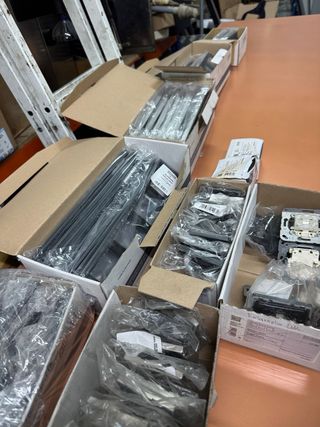 Lote de mecanismos eléctricos de la marca JUNG. Una de las mejores marcas del mercado y diseño minimal. Color gris metalico y gris antracita. -Marcos de 4, de 3 y de 2 -Mecanismo interruptor simple -Mecanismos interruptor doble Consultar precio segun lote