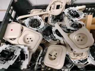 ¡Oportunidad para reformas o repuestos! Vendo lote muy completo de material eléctrico de la marca BJC (Serie Iris). El material está usado pero funcional, ideal para quien busque este acabado metalizado difícil de encontrar a buen precio. El lote incluye aproximadamente: 30+ Marcos de diferentes tamaños (simples, dobles y triples) en color oro/champán. 30+ Mecanismos variados: interruptores, conmutadores y bases de enchufe (Schuko). Varios: Tapas protectoras, algún marco en color rojo y blanco, y material nuevo en caja/bolsa (BJC y Solera). Estado: Usado. Algunos marcos tienen ligeras marcas de uso o restos de pintura.