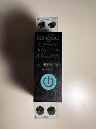 Interruptor inteligente WiFi Tuya, prácticamente nuevo. Ideal para controlar tus dispositivos de forma remota. - Modelo TO-Q-SY1-JWT. - Intensidad máxima: 63A. - Voltaje: 230V. - Frecuencia: 50/60Hz. - Con luz indicadora.