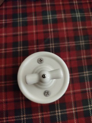 Interruptor de luz antiguo de porcelana blanca. Ideal para dar un toque vintage a tu hogar. - Mecanismo de palanca. - Diseño clásico y elegante. - Material de porcelana resistente.