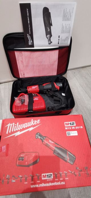 El mejor de su clase en potencia y velocidad, 47Nm de par y 250rpm Electrónica REDLINK™ que protege a la máquina y a la batería contra la sobrecarga Carcasa blindada que proporciona una gran durabilidad Cuerpo compacto, ideal para espacios reducidos Interruptor metálico alargado con velocidad variable, proporcionando un magnífico control durante el uso Monitorización individual de las celdas de la batería que optimiza la autonomía de la máquina y asegura una gran durabilidad de la batería Indicador de carga y luz LED integrado. Añade una mayor iluminación y comodidad al usuario Llave de carraca subcompacta Milwaukee M12 IR-201B 3/8