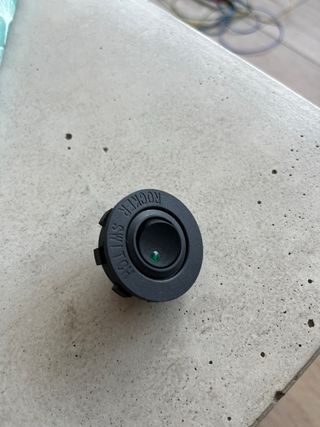 Interruptor de botón con un diseño metálico y un anillo de luz verde. 4 centímetros de ancho - Acabado plateado. - Símbolo de encendido/apagado. - Cableado incluido.