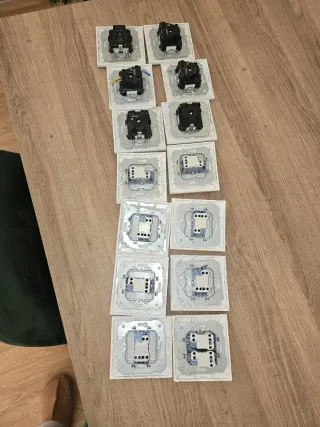 Bases de enchufe e interruptores de luz. Sencillos, dobles y mixtos. Los dobles a 12€. Los sencillos a 6€. Lote completo 75€. 19 unidades en total. Ver fotos.
