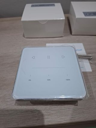 Dos interruptores inteligentes de escena inalámbricos, nuevos. Son de color blanco y tienen un diseño elegante y minimalista. Aplicacion Smart life, soporte multiple, alexa, google home Panel de vidrio tactil - Control de intensidad regulable (0%, 50%, 100%). - Incluye manual de usuario. - Fácil instalación.