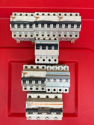 Disponibles 10 interruptores automáticos en perfecto estado. Son ideales para proteger circuitos eléctricos. PRECIO UNIDAD 5€, LOTE 45€ - Se encuentran en su caja original. - Son de color blanco y gris. - Son nuevos.
